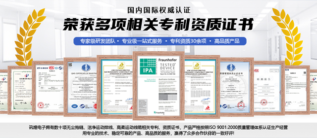 蘇州訊煜電子有限公司坐落于江蘇省蘇州市吳江經濟技術開發區,是國家認定的高新技術企業,深耕線纜與線束領域二十余年,專注于無塵拖鏈、潔凈高柔運動排線、真空線纜、潔凈線纜、高柔運動線纜及智能線束的研發與生產,提供從設計開發到量產交付的全流程服務。公司產品通過ISO 9001:2000質量管理體系認證,并符合RoHS、REACH、CE等國際標準,核心性能指標如潔凈度(IPA Class1)、折彎壽命(達數千萬次)及信號穩定性均達到了很高的標準。